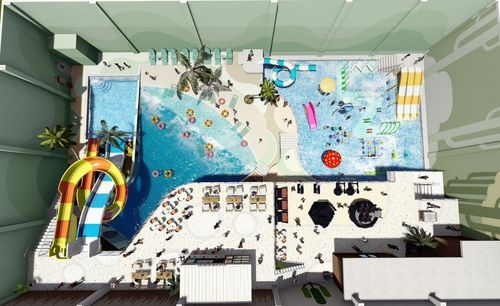 Vison Waterparks provided a completed solution for this waterpark, reception center, shower, toilet, shop and coffee shop.