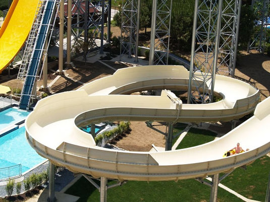 If you want to drift in water parks or in modern city, you can have fun by riding the family rafting water slide. The platform is nearly 20 meters high, the fitting tube can hold 6 riders at one time, which can let the whole family enjoy drifting fun together. The stretch length of this kind of water slide can be customized according to the site map, and it is definitely a real profitable item for water parks.